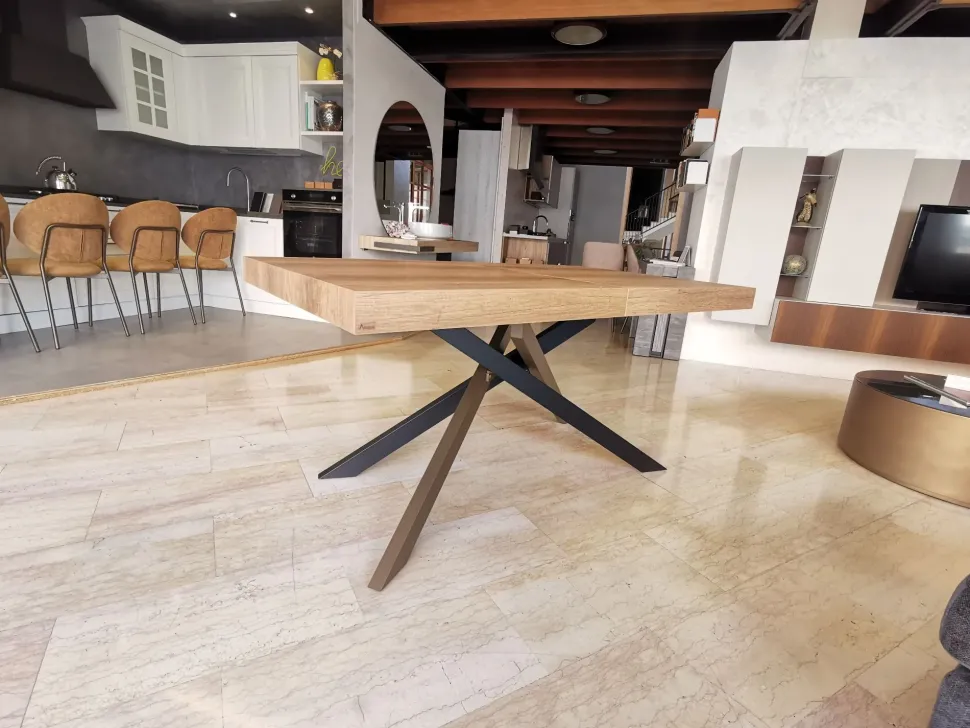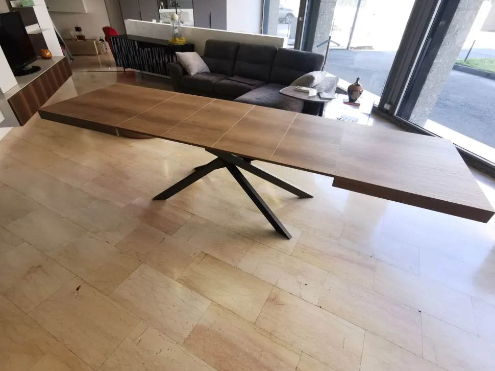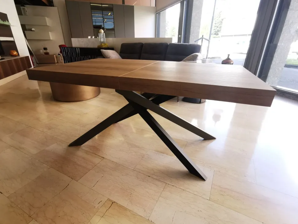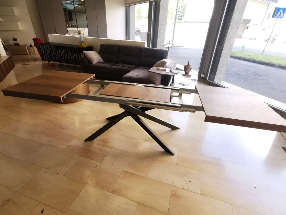 Tavolo allungabile mod. BOSTON con basamento a gambe intrecciate in metallo finitura NERO / OTTONE, Piano e allunghe, contenute all’interno, in laminato effetto legno ROYAL OAK. Le dimensioni del tavolo da chiuso sono 160×90 cm, all’interno sono contenute 4 allunghe da 40 cm ciascuna – Allungabilità massima fino a 320 cm. Meccanismo ad apertura telescopica sincronizzata, tiro da un lato e si allunga automaticamente anche dall’altro. Il tavolo è visionabile presso il nostro showroom ma è anche possibile ordinarlo nuovo scegliendo le finiture, SEMPRE CON IL COSTO IN OFFERTA!! Il prezzo si intende iva compresa e costo di trasporto / spedizione da concordare in base alla destinazione. ARREDAMENTI ARNABOLDI SNC – LIMBIATE – 347 5426154