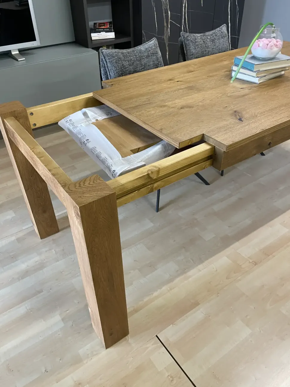 tavolo artigianale in rovere nodato impiallaciato 160×90 allungabile fino a 260 cm con 2 allunghe da 50 cm