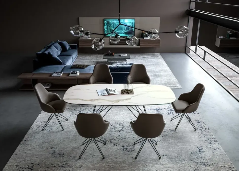 Nel dining o nella zona giorno, la scelta dei tavoli è vincolata allo spazio libero: la regola generale insegna che ci sia lo spazio utile per muoversi con libertà nell’area fra il tavolo e la possibile parete retrostante; la scelta dei tavoli, quindi anche questo modello Cross scontato, dipende dal mood dell’ambiente e dell’arredo già presente.