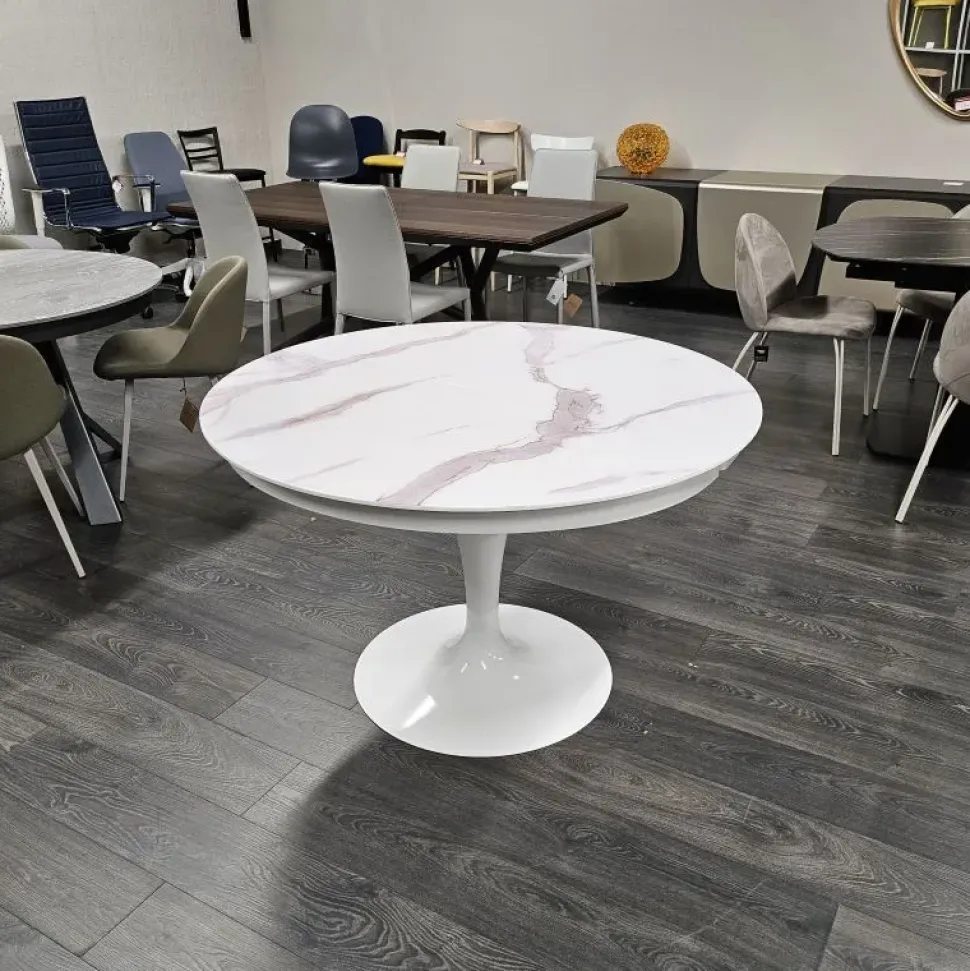 Da Pozzoli Arredamenti è in promozione il tavolo rotondo allungabile Eclipse di Ozzio Italia, un’icona di design che unisce eleganza e funzionalità. Questo tavolo si distingue per il suo basamento centrale in metallo bianco, dalla linea moderna e scultorea, che dona stabilità e leggerezza visiva.