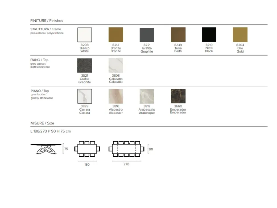 - Per il tavolo Target point Rettangolare allungabile Eclipse, è disponibile un piano di grande qualità realizzato in ceramica, studiato per completare esteticamente ambienti di qualsiasi stile garantendoti anche di avere una superficie di appoggio multifunzionale e sempre a disposizione; questo materiale di grande personalità saprà impreziosire il tuo living o la tua zona cucina seguendo il tuo stile personale.
