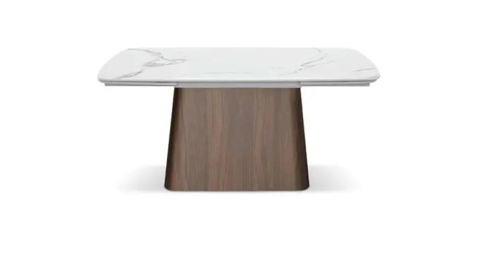 - Base centrale: Solida struttura in metallo rivestita in MDF impiallacciato noce per un look moderno e sofisticato.