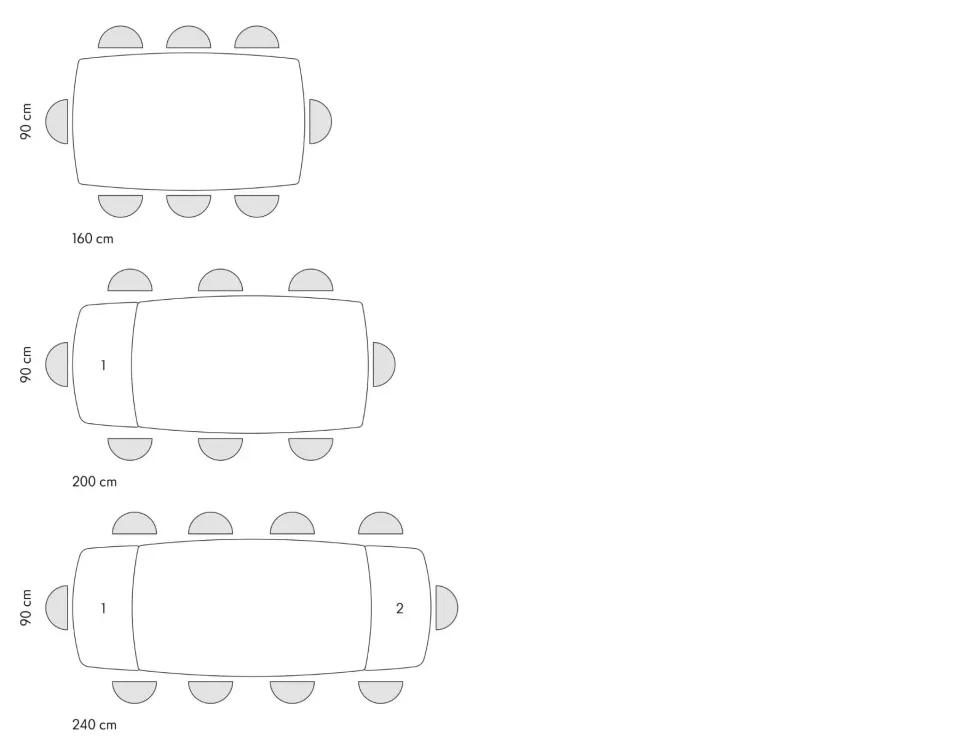 - Dimensioni versatili: Misura 160x90x76h da chiuso e raggiunge 240x90x76h grazie alle due allunghe da 40 cm ciascuna.
