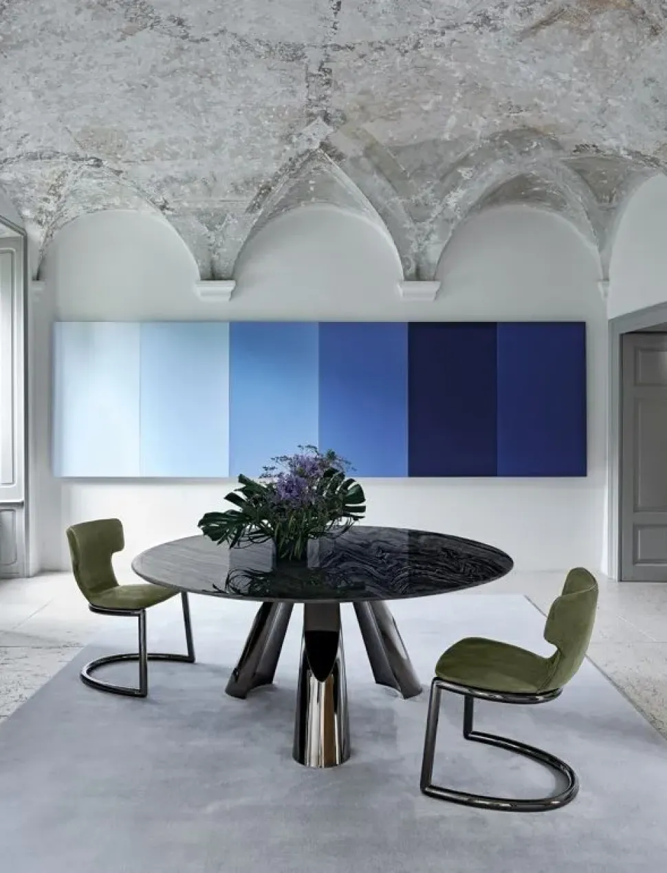 Prince: erede al trono o il musicista che è stato pioniere del multi-strumentalismo e della fusione di generi musicali? Prince di Giuseppe Viganò è senza dubbio l’erede di un grande design. Basta un solo sguardo per capire come dovrebbe essere un tavolo da pranzo: un luogo autentico dove incontrarsi, parlare, mangiare e condividere momenti unici nel tempo. La base, imponente e raffinata, si distingue per un’estetica articolata, unicum con l’intero progetto. Dal punto di vista formale ricorda il focolare, agorà di incontri e dialoghi. Autentico inno alla convivialità e dichiarazione di social living, Prince annulla ogni distanza con gli ospiti e fa di ognuno il benvenuto.