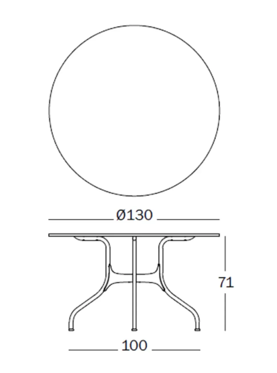 Magis Tavolo rotondo Milà struttura bianco piano in marmo nero marquina; Materiali: struttura in tubo di acciaio verniciato poliestere. Giunto in pressofusione di alluminio verniciato poliestere. Piano Diametro 130 cm.