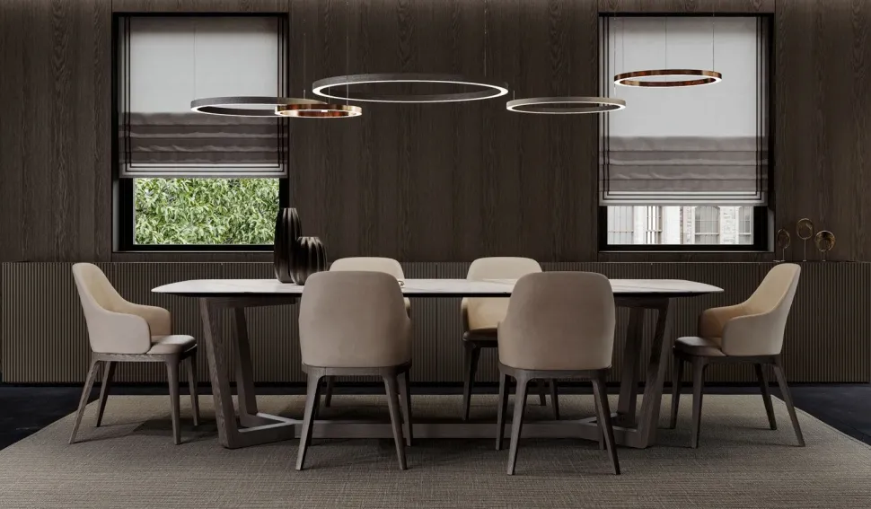 Gli arredi non devono mai risultare d’ingombro, prima di tutto per quanto riguarda lo spazio che occupano seguendo la configurazione degli ambienti; per cui è fondamentale valutare con cura anche le misure del tuo tavolo: il modello Fisso Hector mostrato in foto ha una lunghezza che va oltre 221 cm ed è quindi ideale per un locale di svariate dimensioni.