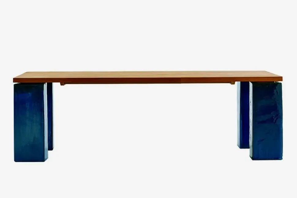 Il tavolo Inout 34 è un tavolo di Gervasoni che può essere posto in ambienti interni oppure in ambienti esterni. Il tavolo è disponibile con consegna circa 15 giorni. Il piano del tavolo Inout è in legno, a doghe di teak naturale, mentre i piedi sono in ceramica di colore Blu, Bianco,o Grigio Antracite, con struttura portante in acciaio. DIMENSIONI: L 210, P 112, H 71 cm