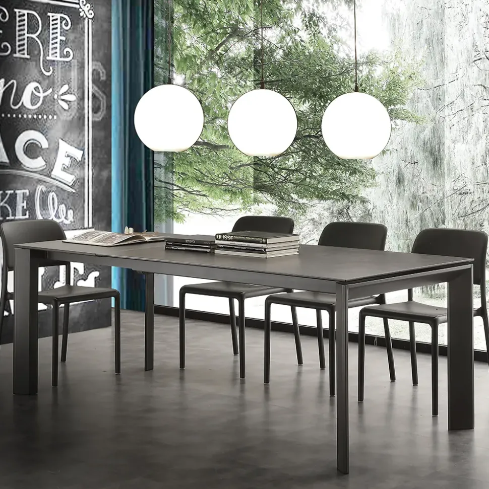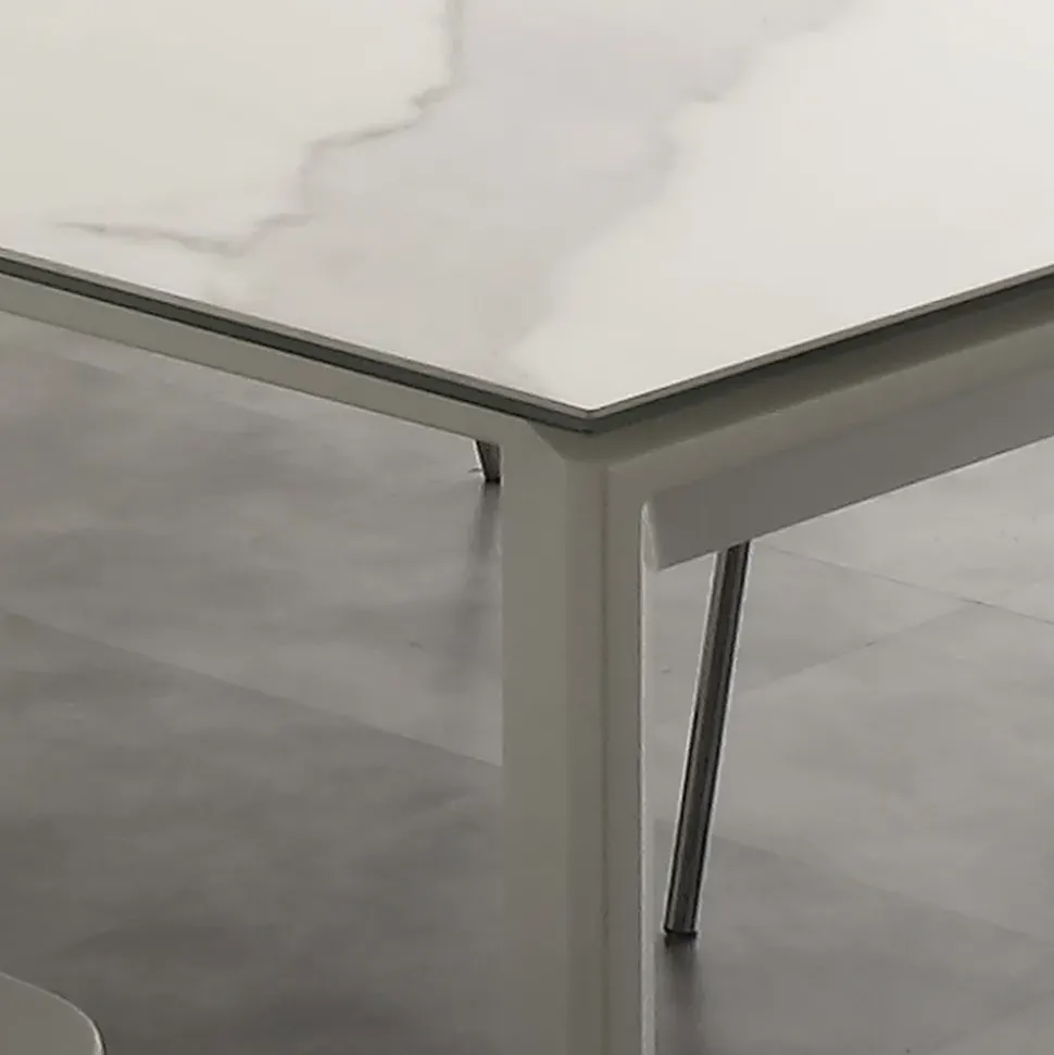 Il piano in ceramica termoaccoppiata conferisce grande resistenza al piano. Ceramique saprà esaltare lo stile della vostra casa, in particolare il soggiorno oppure la cucina. La versione in promozione del tavolo Ceramique ha 1 allunga ed è nelle dimensioni sotto riportate. E’ disponibile anche in versione 120 x 80 aperto 180 e 140 x 90 aperto 240 co due allunghe (Ceramique Duo).