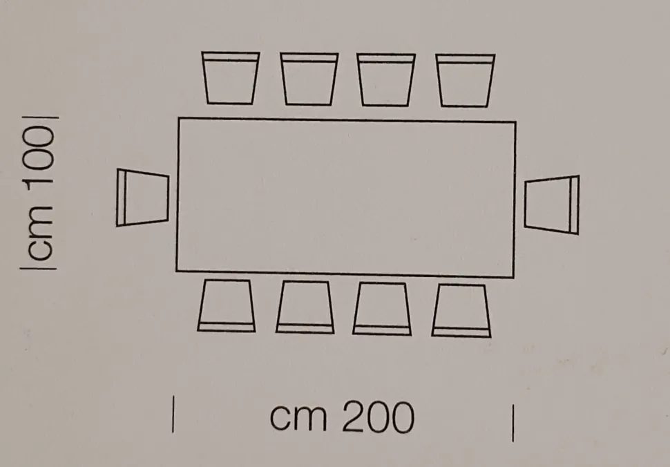 Le dimensioni del tavolo sono L200 x P100 x H75