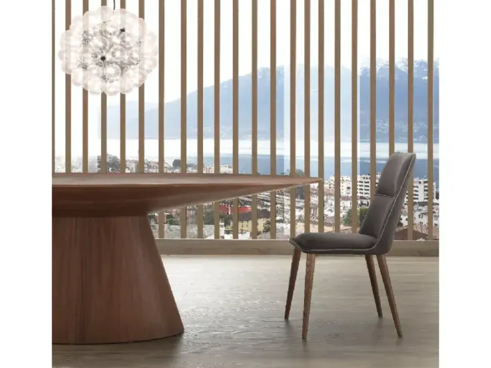 - Una struttura con basamento centrale ultima l’estetica del tavolo Ellittico qui disponibile, che si confermerà in questo modo protagonista del soggiorno o della zona cucina in cui è collocato, grazie alla sua figura dall’estetica raffinata.