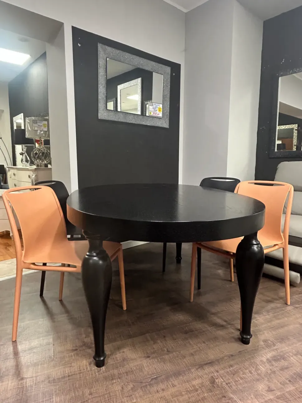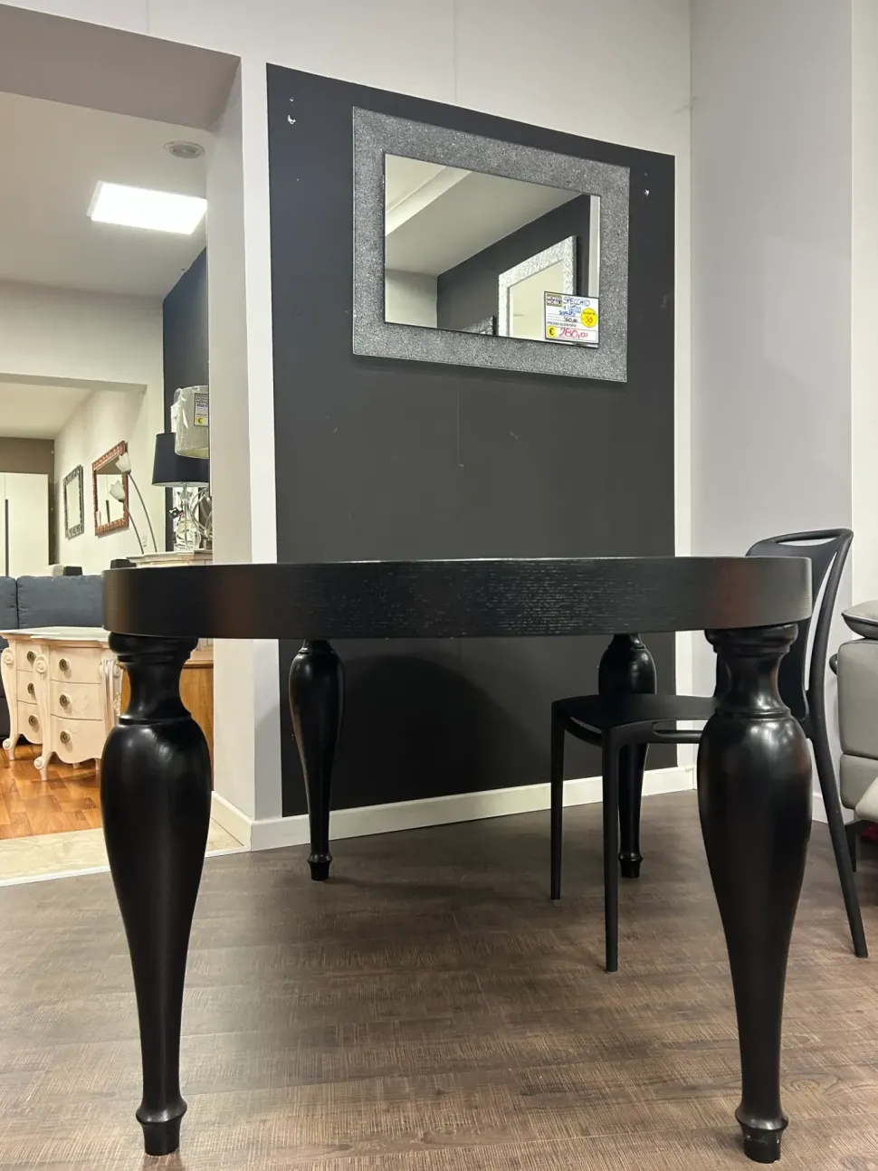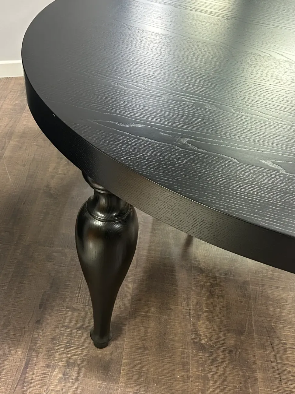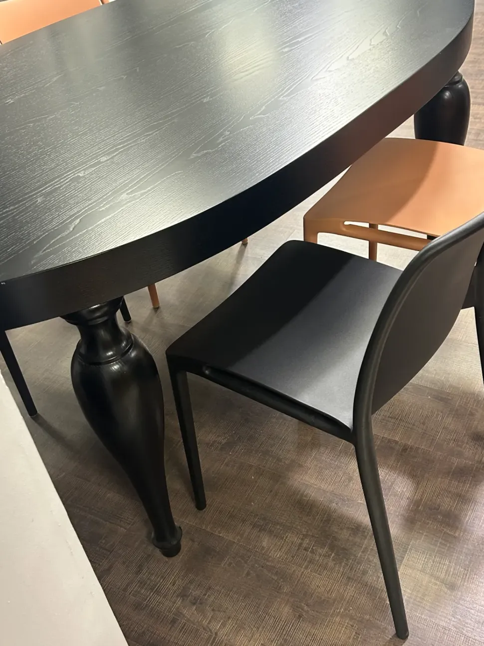 Tavolo fisso ovale (legno curvato per il bordo) impiallacciato in Frassino, nero.