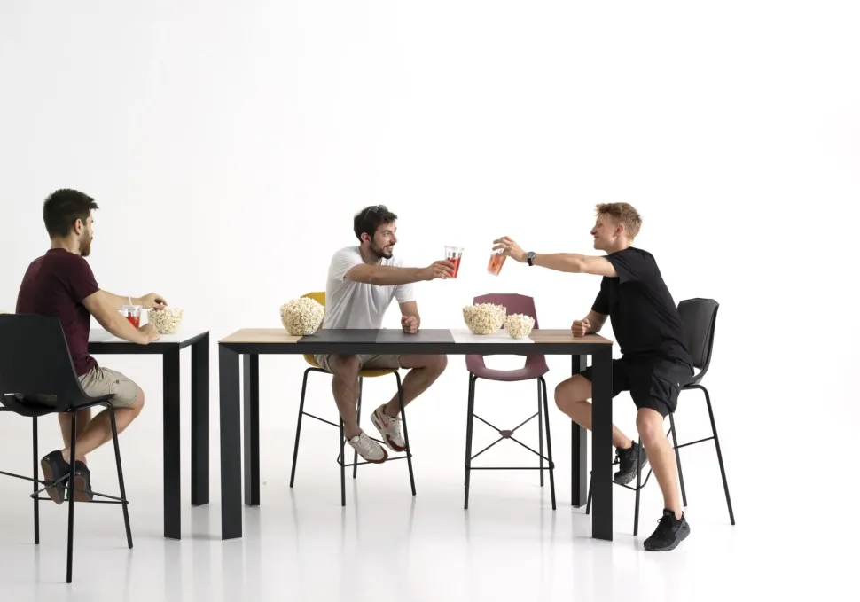 E’ possible anche avere il tavolo con il basamento più alto ad uso penisola