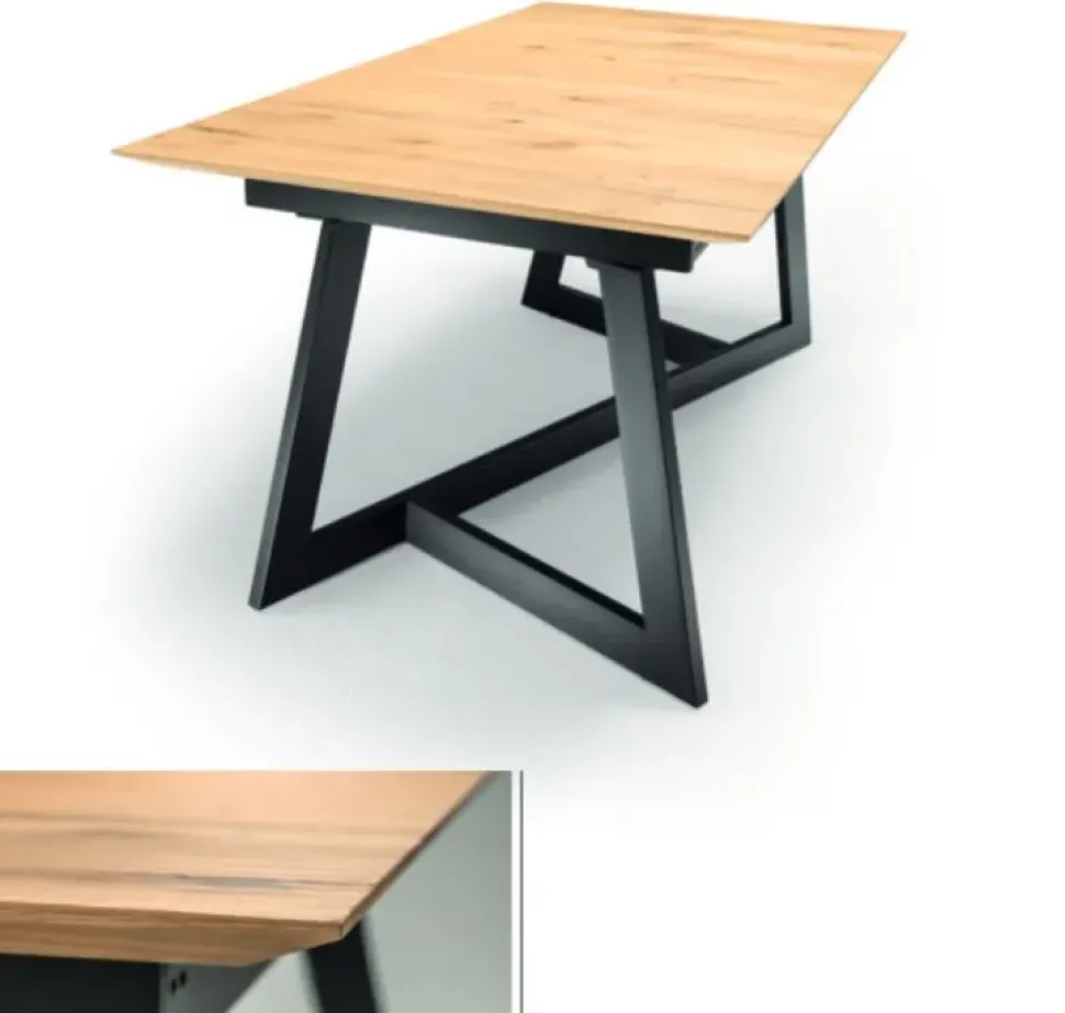 LA PROPOSTA E’ PER IL TAVOLO IN RIVERE CON BASAMENTO IN FERRO DI CM160X90 ALLUNGABILE CM 260 PRODOTTO IN ROVERE CON VARIE FINITURE A SCELTA.