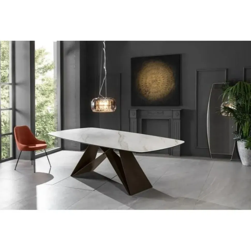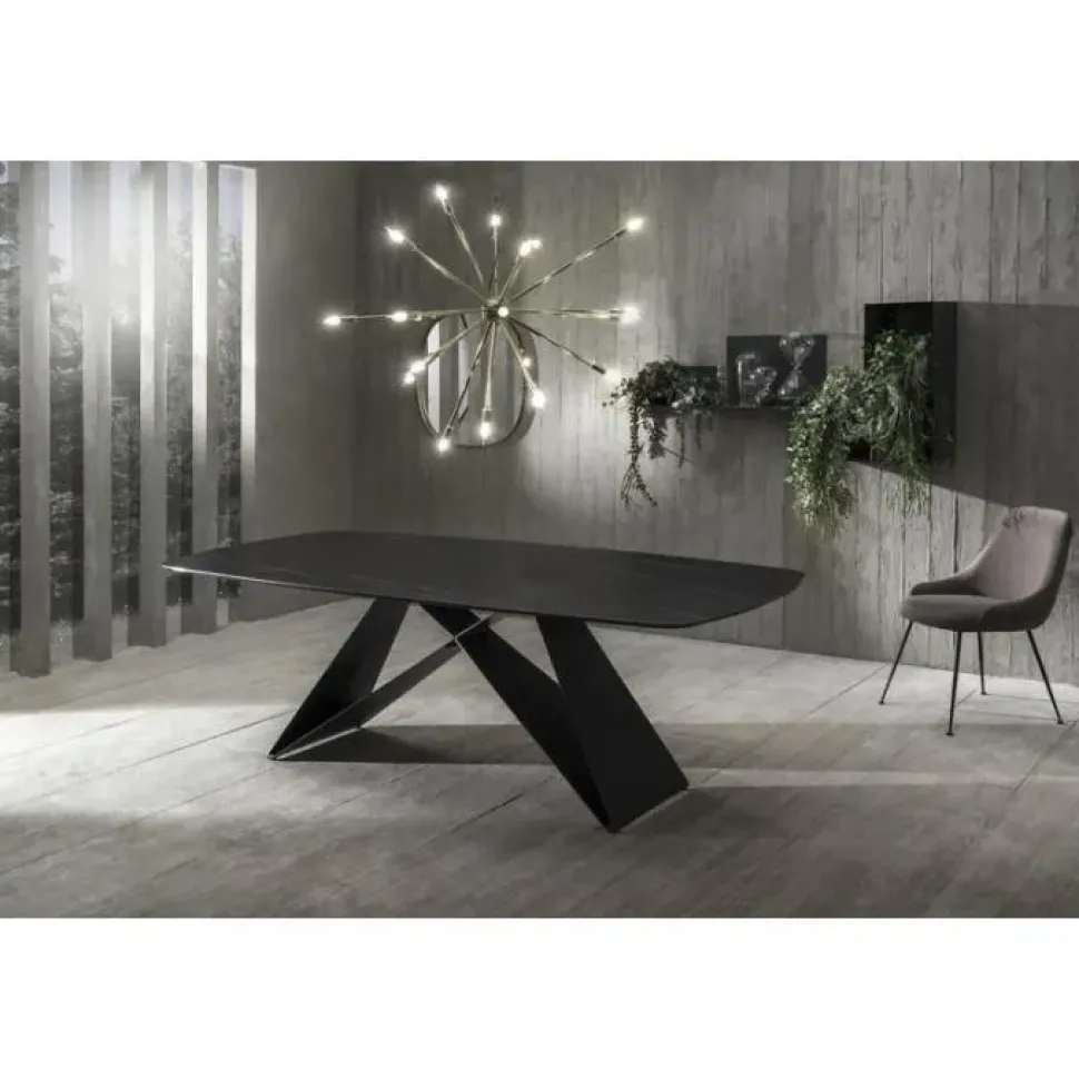 I tavoli sono, con le sedie, i pezzi di arredo più essenziali in ogni casa, difatti è tanto importante sceglierli in base alle esigenze di praticità ed estetica: questo tavolo Thanos include un piano in ceramica di gran classe, resistente negli anni e capace di preservare il valore estetico del materiale, garantendoti anche di avere una superficie di appoggio sempre a disposizione.