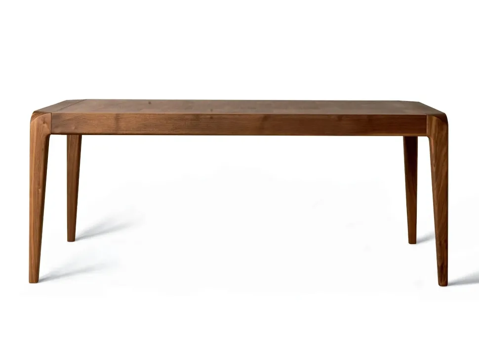 Sentiero è un tavolo allungabile in legno massello, espressione di design contemporaneo e di alta qualità artigianale italiana. Ha forma rettangolare e presenta struttura e gambe in pregiato noce naturale con intarsio e finitura in essenza. La possibilità di essere allungato tramite fasce sotto-piano garantisce versatilità e praticità nell’uso quotidiano. Il tavolo misura L 190/290 cm x P 100 cm H 78 cm.