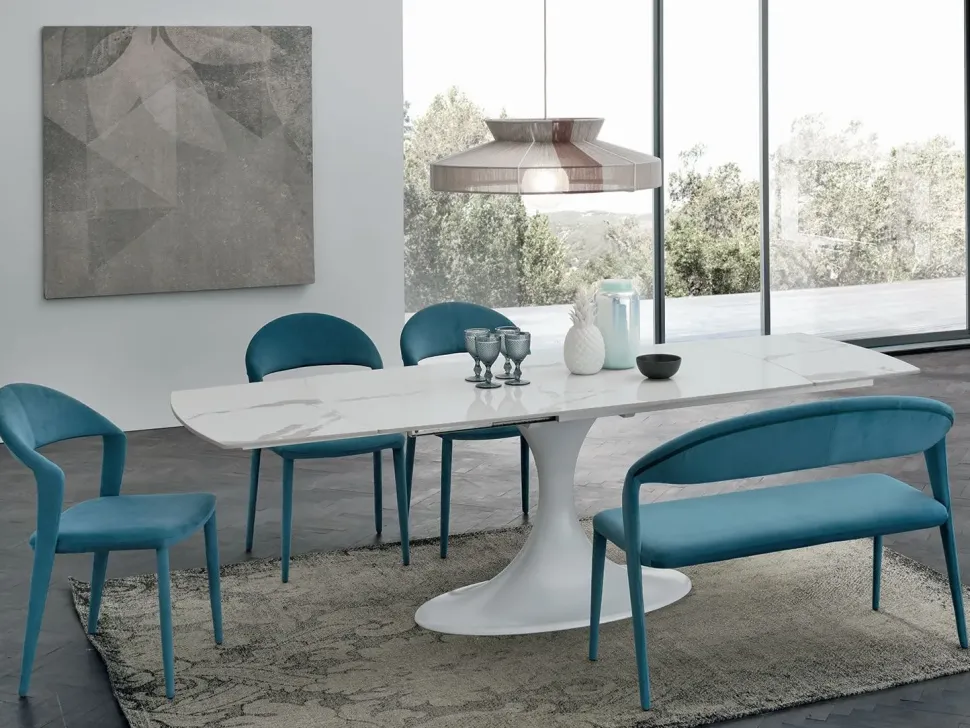 - Durante l’acquisto dei tavoli da posizionare in casa, è consigliabile fare molta attenzione altresì alle finiture con cui sono stati fatti, poiché assumono disparate qualità di praticità ed estetica per il tipo di piano: il tavolo Calice qui visibile ne include uno realizzato in ceramica di grande impatto estetico, su cui potrai appoggiare oggettistica d’uso quotidiano nonchè propriamente decorativo.