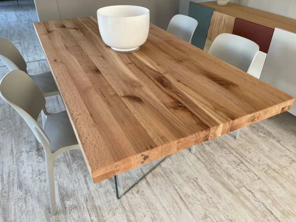Tavolo Devina Nais in legno con bordi dritti nelle dimensioni L 200 x P 100 cm effetto grezzo predisposto per gambe WALL in vetro per tavolo posizionate a “V”.