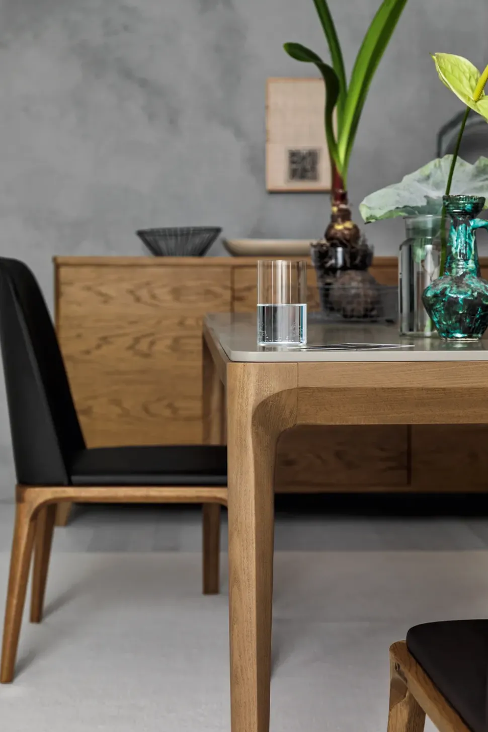 Il tavolo moderno Ekanta Le Fablier è allungabile fino a 220 cm ed è disponibile in diverse finiture, che rende unica l’esperienza al tatto.