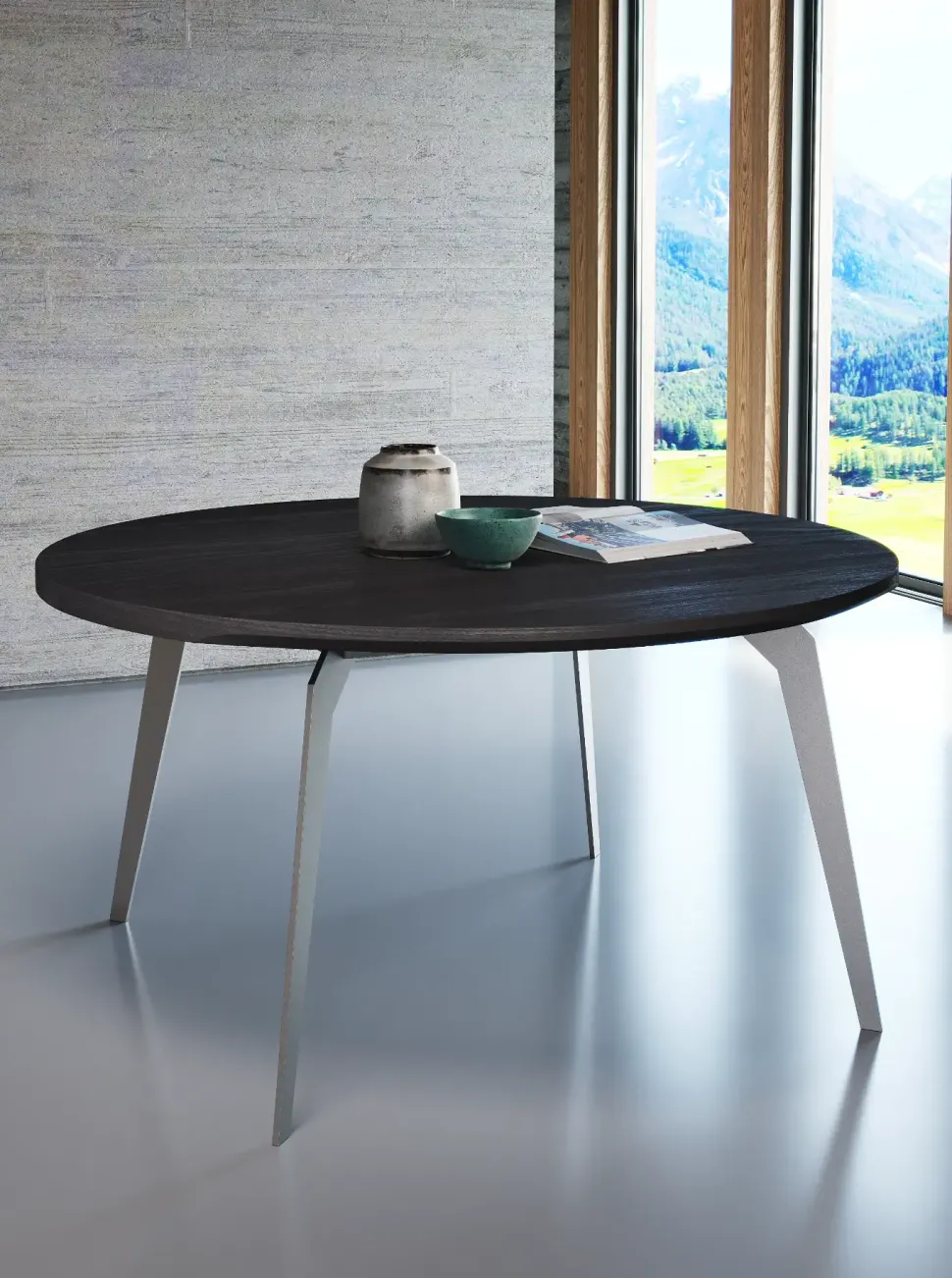 - Il tavolo Rotondo Fisso Tavolo rotondo gamba in metallo qui visibile va da 101 a 130 cm in lunghezza, risultando dunque ideale per locali di diverse misure; i mobili devono arricchire gli spazi indoor esaltando anche le doti pratiche degli stessi: per non essere ingombranti, si devono adattare alle dimensioni ed alla disposizione degli ambienti dove verranno sistemati.