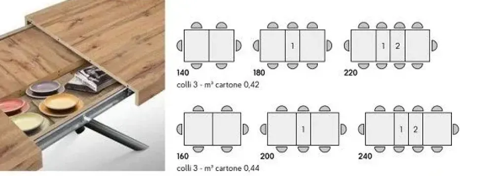 L’offerta è per un tavolo di cm 160 con 2 allunge di cm. 40, aperto cm 240×90